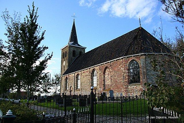 Reformed Church, tower and churchyard. Gothic single-nave church building with tower whose saddle roof is set between inward and outward curved gables. In the church marble epitaph for Hobbe van Aylva and numerous tombstones; simple pulpit. Two-manual organ, made around 1880 by L. van Dam and Sons. Bell tower with the sound of two bells, one by Hermanus, 1392?, diam. 79 cm. and one by H. Falck, 1618, diam. 99 cm. Mechanical tower clock Gebr. van Bergen, Midwolda, 1917, later provided with electric winding.