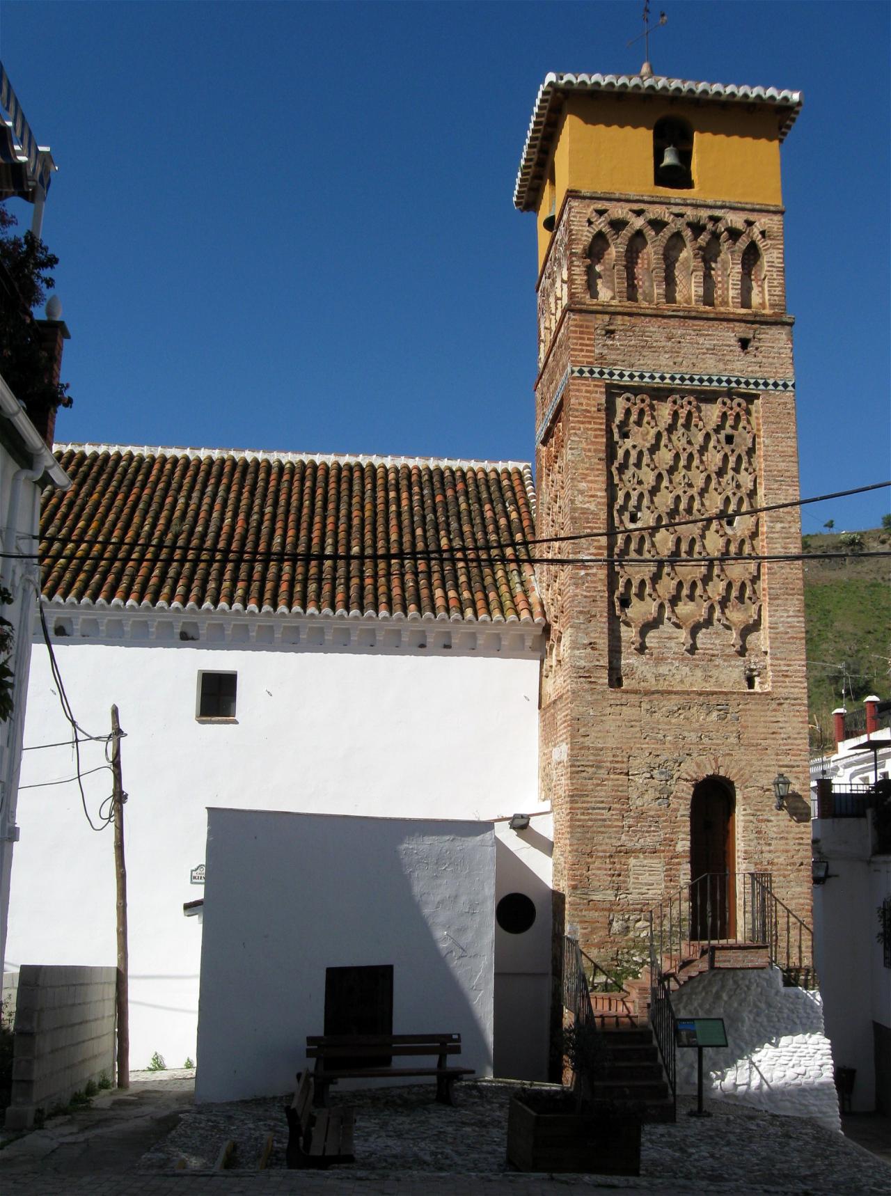 The Mudejar minaret of Árchez is the bell tower of the church of Nuestra Señora de la Encarnación. It is the former minaret of the 14th century Almohad mosque, of which only the tower, built in red brick and with a square structure, has been preserved. It is considered one of the best examples of Almohad architecture that have been preserved.