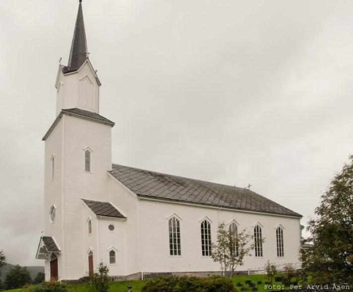Naustdal Church is a long church dating from 1891. The building is made of wood and was designed by the architect Adolf Schirmer. The present church replaced a stone church dating from around 1150 which had become too small. The previous church was one of the very last medieval churches in Norway to be demolished.