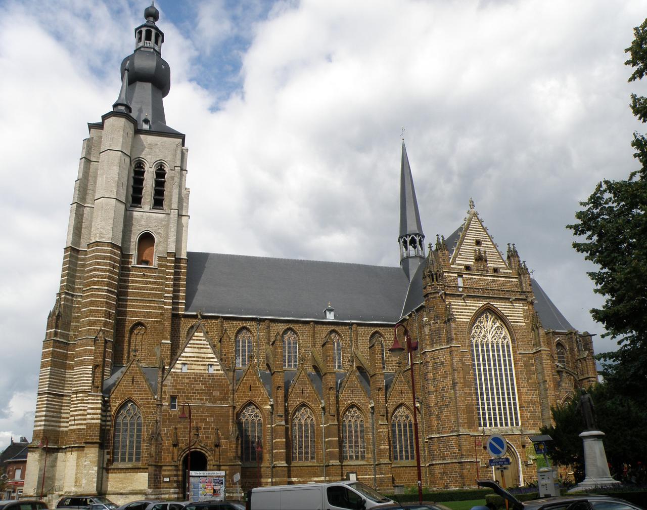 De collegiale Onze-Lieve-Vrouwekerk van Aarschot, met voormalig kerkhof en 'reizend' orgel. Kerk met kerkhof, een oase van groen bij het kloppend hart van de stad.
