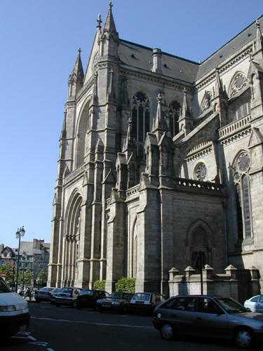 Building built in the 19th century from 1884 to 1904; emblematic building from the religious, architectural and urban planning point of view. This monumental project, whose design and construction took nearly 40 years to complete, inevitably evokes its implicit reference to cathedrals. The choice of the "Gothic" style, introduced in Rennes by Jacques Mellet for the construction of the Missionaries' chapel (destroyed), as early as 1841, is here an eclectic approach, to which Abbot Millon subscribes, in the Semaine Religieuse, and which he qualifies as the "ogival style", considering "that it is preferable to choose with a wise and prudent eclecticism, the beauties of several styles of the same period, rather than slavishly copying a known work.