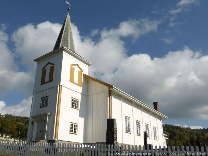 The Haugner Church is a long wooden church dating from 1950. The interior of the church is well preserved from the period of construction with unpainted panelled walls. The altarpiece is a copy of the "Resurrection" by Adolph Tidemand in the church in Bragernes.