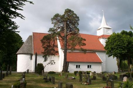 Øyestad Church is a long Gothic church built in stone around 1200. The east wall was probably demolished in the 17th century and a wooden choir was built. The church was destroyed by fire on 18 May 1900. The choir, sacristy, tower, altarpiece and pulpit were destroyed as well as the paintings on the walls. The church was restored and rededicated in 1902.