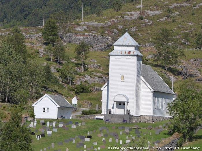 The church in Rugsund was built in 1838 according to standard drawings by the architect Hans Ditlev Franciscus Linstow. The church was renovated, rebuilt and extended in 1911-1912. At that time, among other things, the tower was changed and Lars Kinsarvik carved and painted the altar, pulpit, font and wall decoration.