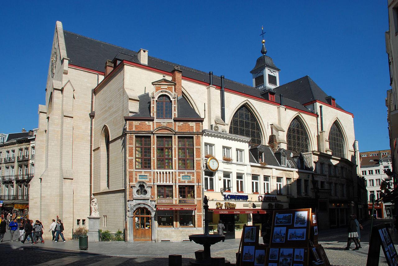 The Church of St. Nicholas in Brussels, built around 1125, is one of the first churches in Brussels and the best preserved in its successive modifications. Of the original Romanesque style church, some remains remain in the entrance porch, discovered during the reconstruction of the façade in 1956. This Romanesque style building had a tower that housed the city's bells and was therefore the bell tower of Brussels. Destroyed by a storm in 1367, it was immediately rebuilt. The church was closed in 1797 and sold in 1799. Almost demolished, it was finally returned to worship in 1804.