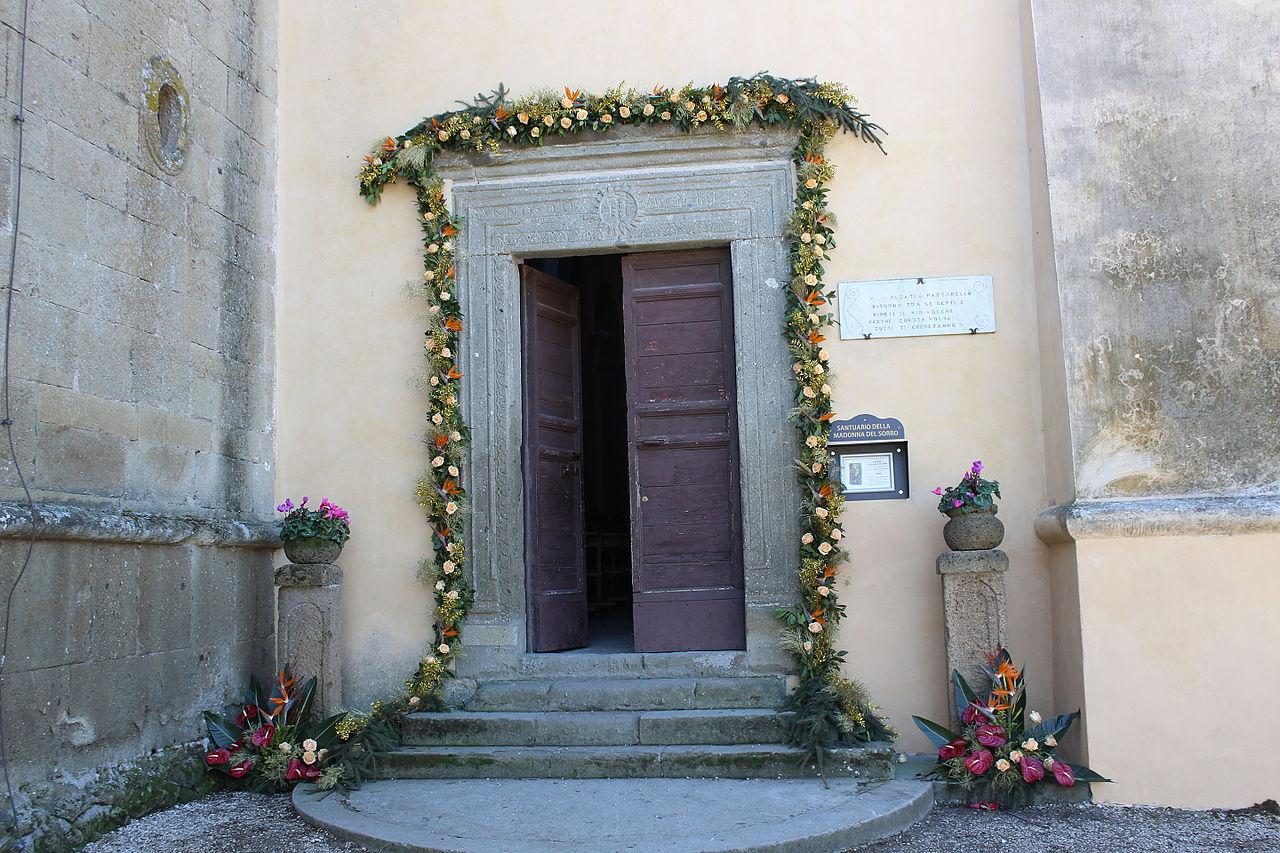 The Sanctuary of Santa Maria del Sorbo was probably founded in the 10th century as the chapel of a castle that once stood on the site. In 1427 Cardinal Giordano Orsini granted the remains of the abandoned castle and chapel to the Carmelite order and allowed them to build a convent. The church of the convent, located on the former chapel, houses a miraculous icon of the Virgin Mary, hence its name of sanctuary.