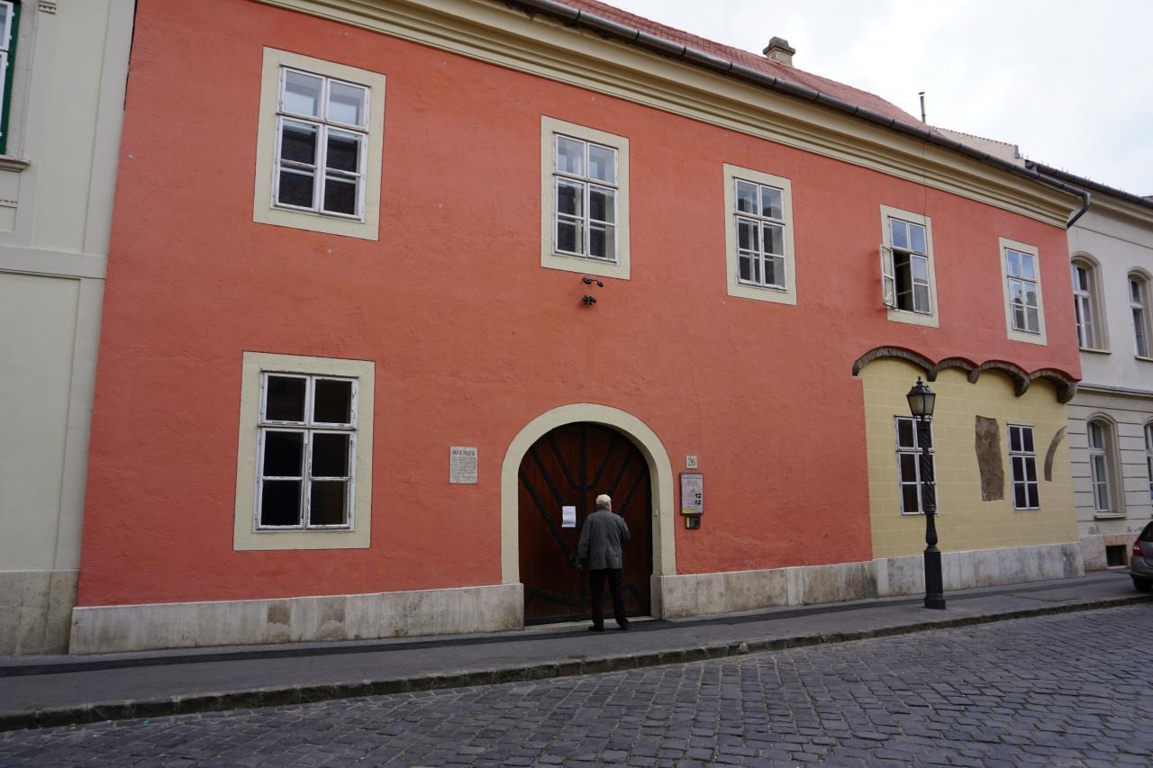 The small medieval synagogue in Buda presumably existed in the fourteenth century and was later included in the structure of a dwelling house. The original layout of the synagogue is not clear. The preserved wall paintings include a Star of David inscribed with the text of the priestly benediction pronounced by the cohanim when they bless the worshippers, and a bow and arrow, inscribed with the Prayer of Hannah. Currently the synagogue is a museum. It also houses a lapidarium with Jewish tombstones from the medieval and Ottoman periods (thirteenth to seventeenth centuries).