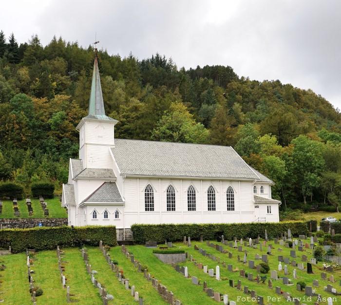 The church of Bremanger, is a long wooden church dating from 1914. The architect of the church was Anders Karlsen. The oldest historical traces of a church on this site date back to 1330.