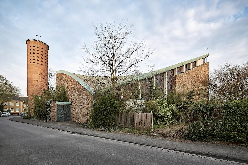 St. Barbara Church, located in a residential neighborhood in Duisburg, Germany, was constructed between 1961 and 1964. Designed by Toni Hermanns, the church stands out with its modern asymmetrical architecture, creating a formal contrast to the surrounding garden city-style housing.