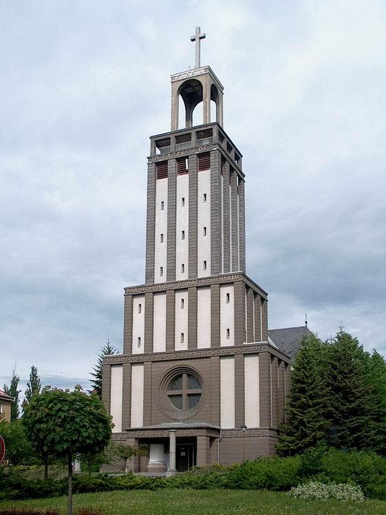 St. Hedwig's Church is a modernist building, one of the last works of the architect Léopold Bauer. After the end of an architectural competition, construction work began in 1933, but was interrupted by the Second World War, during which the unfinished church served as a warehouse for military equipment and the observatory bell tower for the Luftwaffe. After the war, the church was used as a warehouse until 1989.