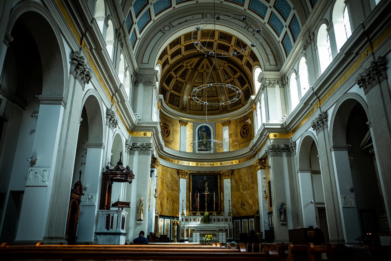 Built for the London French community in 1953-55 from designs by Professor Hector Corfiato, the circular design of the church repeats the form of two previous buildings on the site, a diorama of the 1790s and a church of the 1860s by LA Boileau. Corfiato's church is important as an advanced design showing the influence of the Liturgical Movement, and as a showcase of Art Sacre, notably the murals in the Lady Chapel by Jean Cocteau.