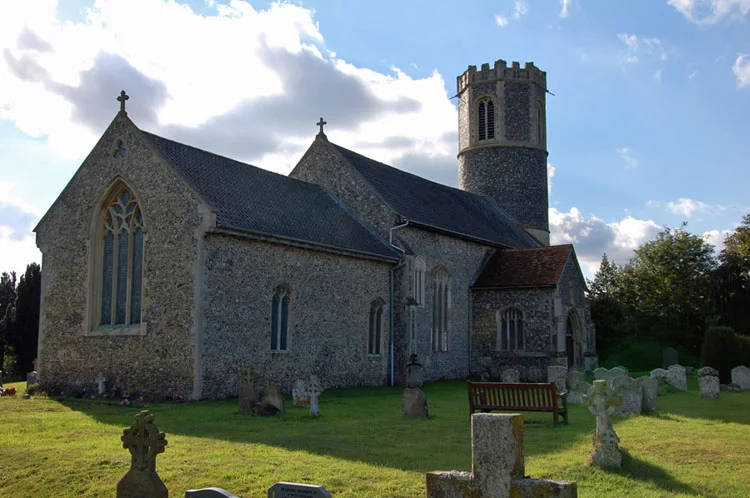 St Remigius Church is located in Roydon, a Norfolk village about two miles west of Diss, and right on the border to Suffolk.