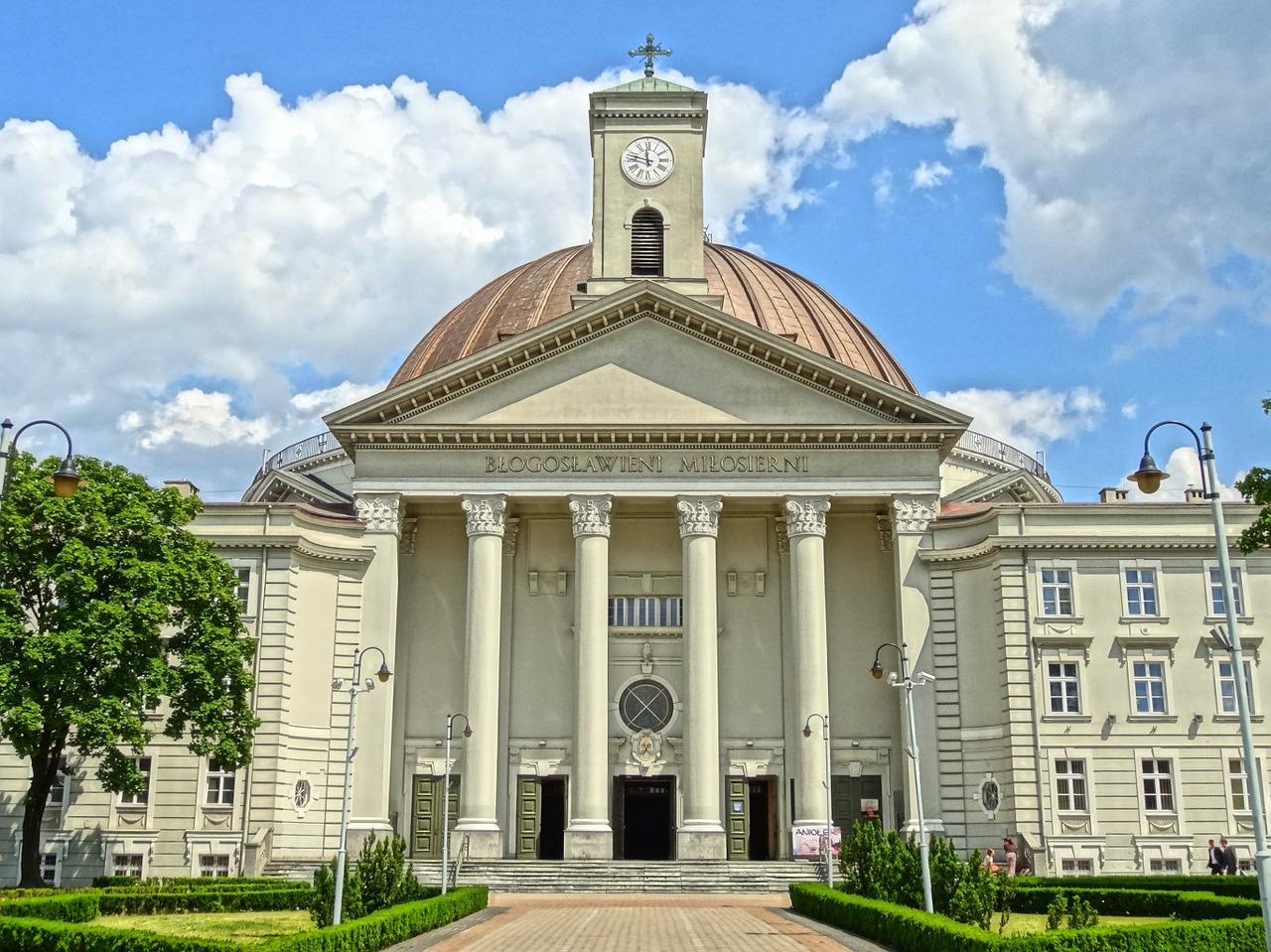 The construction of the minor basilica of St. Vincent de Paul as a monumental temple began in 1924 to celebrate the return of Pomerania to Poland. The building mixes neoclassical and neo-baroque forms.