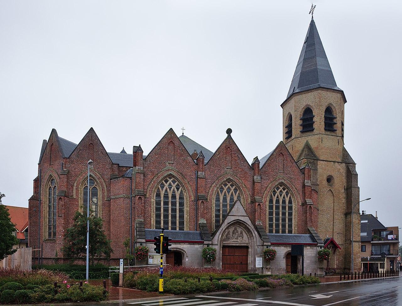 Middelkerke became an independent parish in 1293, but their church flooded in 1334. The building was destroyed in 1576 because of the wars of religion. The south aisle was restored in 1635 and the tower, which now served as the west tower, in 1681. The building was demolished again from 1848 until 1850, but the tower was preserved. A new church was built in neo-Gothic style. During the First World War, the church and tower were shelled by the Allies and blown up by the German occupier in 1915. From 1919 until 1921, the church was rebuilt to a design by Gustaaf Vandamme, whereby the destroyed church was reconstructed as much as possible. From 1932-1935 the church was greatly expanded, with the existing church with choir still serving as an extension of the nave, now transverse to the new church, which was constructed in a neo-Romanesque style in a south-north orientation. This last design was also by Gustaaf Vandamme.