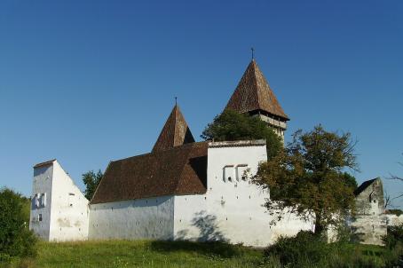 A few miles away and slightly uphill, in the middle of the new village a church was erected and surrounded by two ring walls. The two defensive towers were supposed to offer additional protection. A defensive level was built in the timber frame construction technique above the nave. Mid-19th century, the community dismantled the inner ring wall to use the stones for an extension of the church.