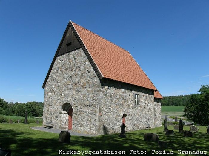 The stone church of Berg was built in the 12th century and dedicated to Saint Lawrence. After a new church was built on the site in 1878, the old medieval church was partially demolished in 1882. However, the remains of the walls were preserved in the early 1900s, and from 1965 to 1970 the church was rebuilt, partly with the original stone, according to drawings by the architect Finn Bryn.