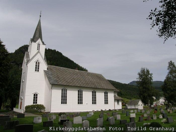 Strandebarm church is a long church built of wood in 1876. The architect for the church was Ole Vangberg. The modern church is the third to exist at Strandebarm. The first, which was a stave church, dated from 1306.