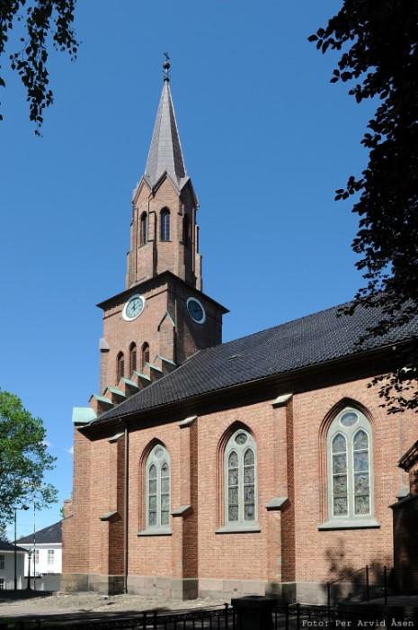 Tønsberg Cathedral, which was consecrated in 1858, is located where the medieval church of Lavran stood before it was demolished in 1809-14. The park around the church was the Lavranskirken cemetery. The present church is a long, relatively richly designed neo-gothic church with a west tower, built in unpainted red brick according to the drawings of Chr. H. Grosch.