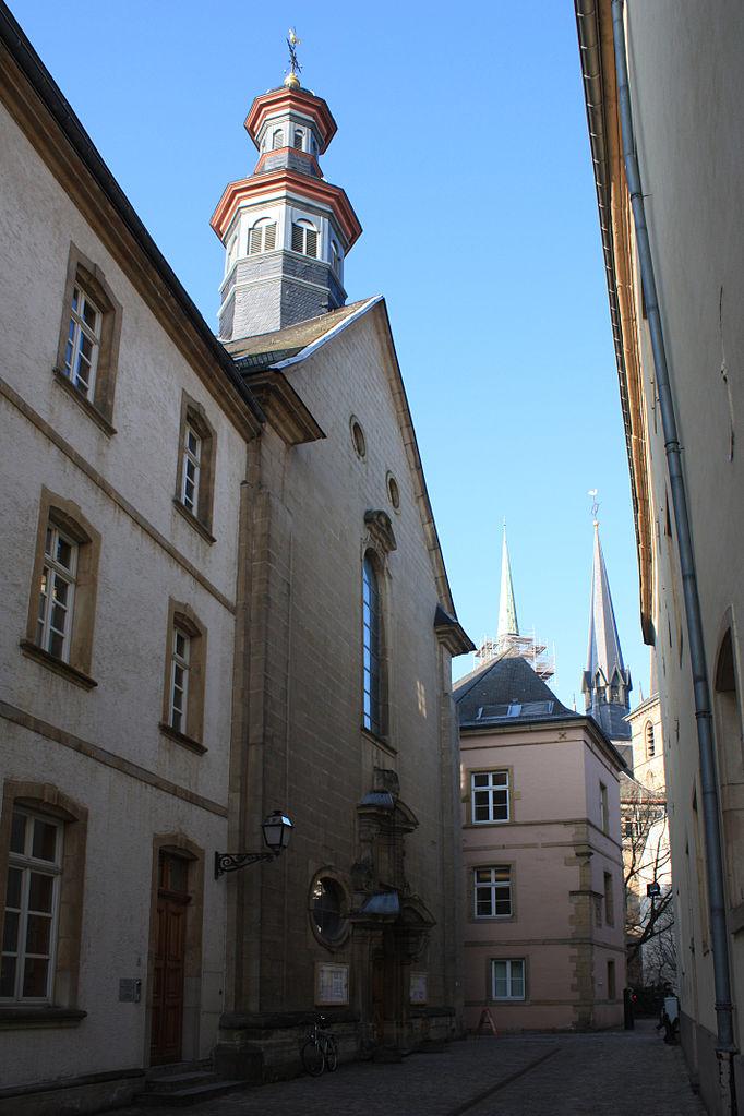 The Church of the Trinity is located where a chapel was built in 1313. During the siege of the city by the troops of Louis XIV in 1684, the church and the 17th-century monastery surrounding it were destroyed. From 1737 to 1745, a new church was built on exactly the same spot and was the first large Baroque building in the town. Affected by the French Revolution, the church was transformed into a fodder store and as a theatre. Since 1817, it has been used for Protestant services.