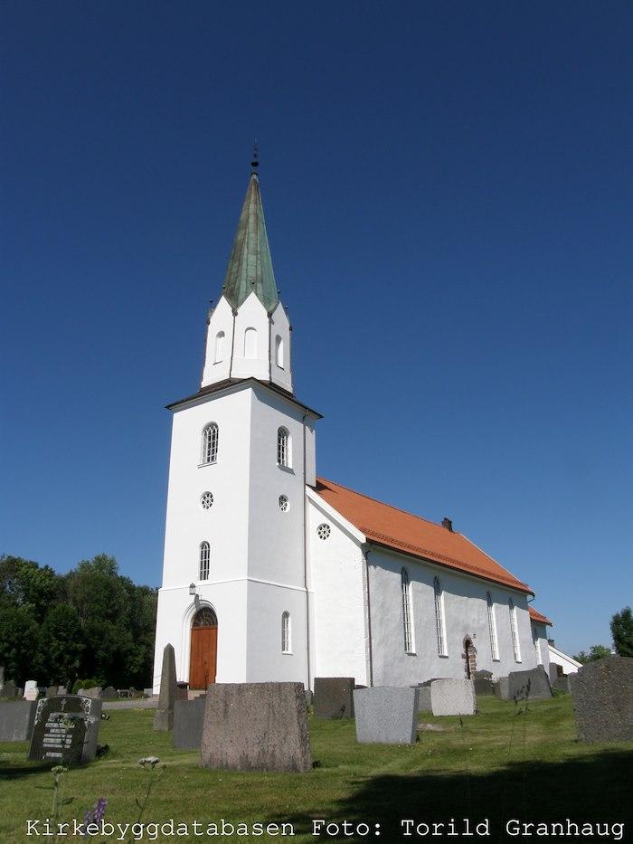 The "new church" in stone dating from the Middle Ages. It is a long church with a rectangular nave and a lower, narrower choir. In 1848 the church was given a tower at the west end of the nave, and in 1880 a vestry was built at the east end of the chancel. The church belonged to the county of Jarlsberg from 1673 to 1776, when 25 men from the congregation bought the church. It was not until 1877 that the church became the property of the congregation.