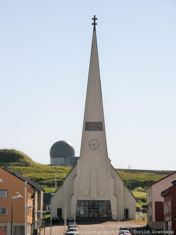 Båtsfjord church is a working church from 1971, designed by architect Hans Magnus. Jardar Lunde has made the 85 m large stained glass window.