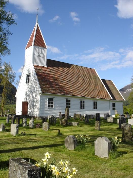The church in Helgheim is a long church built in 1877 when the population of the village was growing and a larger church was needed. The existing church was therefore demolished and the present church was built. The builder was Ole Vanberg, who was responsible for many churches in the county and in the same year also built the church of Vik. In 1952 the church was renovated and given lighter colours inside.