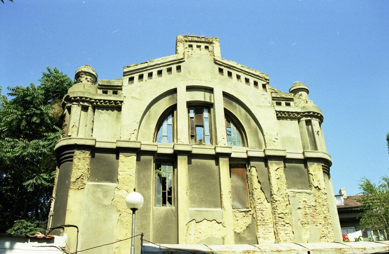 The Ashkenazi Synagogue in Varna was built in 1927 and restored in 2006. This Art Deco brick building is now used as an office.