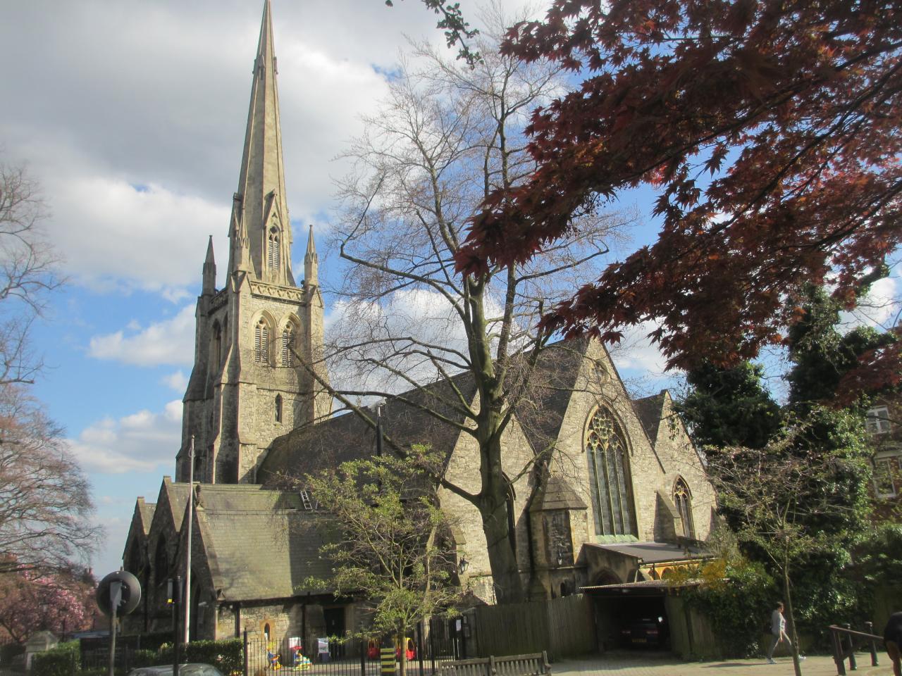 Christ Church, Hampstead, built between 1850 and 1852 in the Early English Gothic style. In 1881-1882, the north porch and north aisle were added. In 2015, major renovation work was carried out on the church.
