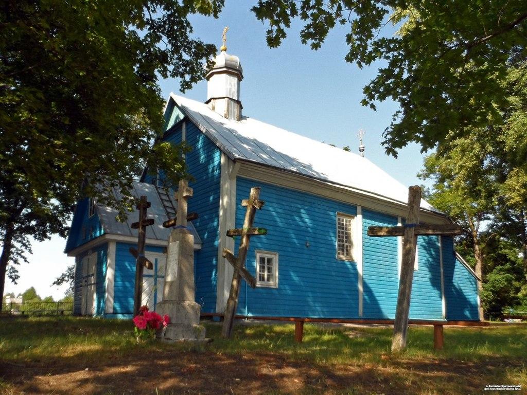 The Church of the Intercession is a wooden church built in 1740, rebuilt in 1884 by the engineer Alexander Roemer. The church hall is covered with a flat beamed ceiling. The sacristy is located behind the apse, which is underlined by an iconostasis created in the 1830s, and a choir above the entrance. In front of the church, there is a bell tower.