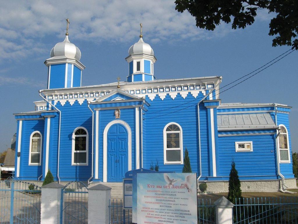 The Church of the Intercession is a wooden Orthodox church built in 1885. It is a monument of eclectic architecture using forms of classicism and retrospective Russian style. It consists of a vestibule, a nave, a main hall made of logs, an apse with side sacristies.