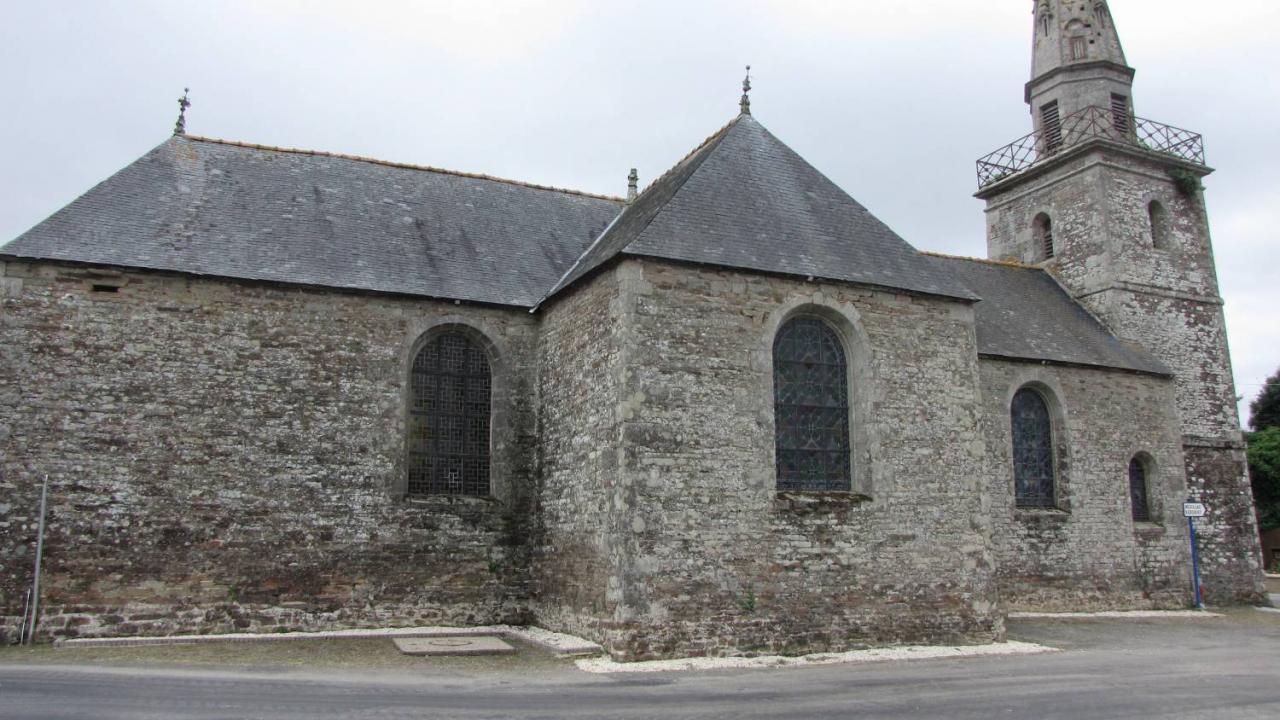 The Church of Saint-Gonéry is built of shale and granite, with a Latin cross plan. Its nave, devoid of a collateral chapel, is preceded by a square bell tower, forming a narthex. The right chevet leans against the sacristy, and the paneled framing was painted blue in the nineteenth century.