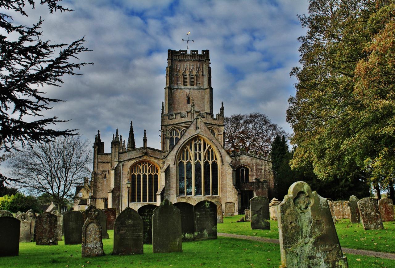 The first mention of the church in Northleach dates from around 1100, but from the end of the 14th century, the church was almost completely rebuilt in perpendicular Gothic style. The west tower was built around 1380-1400, and the baptismal font also dates from the end of the 14th century. The present nave and the south porch were built in the first half of the 15th century, as was the pulpit. The church was restored in 1877-84 according to the plans of the neo-Gothic architect James Brooks.