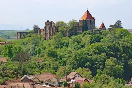 Only the masonry of the tower of the hall church in Hamba originates from the Romanesque construction time. Most probably it was repaired after the destruction of the church in 1493 and it was strengthened with a wooden parapet walk. The church itself was not rebuilt, but surrounded by a ring wall. A new construction erected in 1749 survived only until 1830, being replaced by the actual church. The small neo-classical church of harmonious proportions stands empty today, as its inventory comprising the balconies, the pulpit and the pews has been moved to another location.