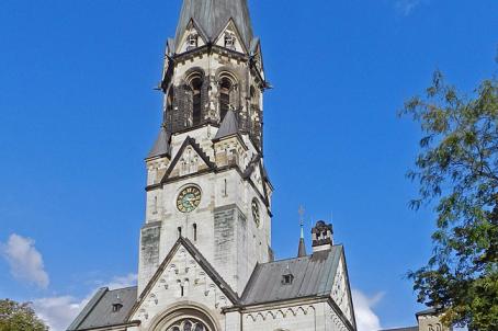 The Holy Cross Church is a Protestant church which was built between 1885 and 1888 according to the plans of the master-builder Johannes Otzen under the supervision of Julius Kleinau. Destroyed by Allied air raids during the Second World War, the church was rebuilt in 1951-1959 in a simplified form.