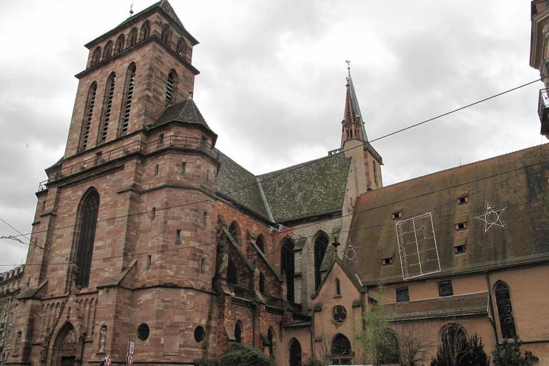 The old St. Peter's Church was first mentioned in the 12th century, but the construction of the present Gothic church began in the 14th century. During the Reformation, the church became Protestant in 1529, but when Louis XIV conquered the city in 1683, parts of the church were returned to the Catholics and a wall was built to separate the two areas. Today, the part of the church on the side of the 22-November street is dedicated to Catholic worship while the part overlooking the Grand'rue is dedicated to Protestant worship.