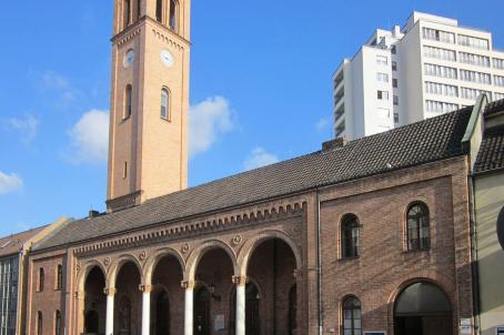 St. Luke's Church was built from 1859 to 1861 as a cross-armed nave under the direction of the public works inspector Gustav Möller. The design in the style of the Royal Basilica concept came from the head of the Prussian court and state buildings Friedrich August Stüler. The church was destroyed on 29 April 1945 and was rebuilt under the direction of architect Georg Thofehrn. It was rededicated on 19 December 1954.