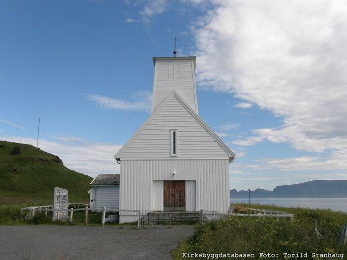 Øksfjord church is a brick long church from 1954. The architect for the church was Hans Magnus, who in the following decades designed several other churches in northern Norway and on Svalbard.