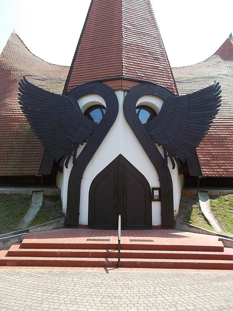 The Lutheran church of Siófok was built in the 1980s in an organic style according to the plans of Imre Makovecz. Much of the wood needed for the construction of the church was sent from Oulu, Siófok's twin town, so the public space around the church was named Oulu Park. One of the seven towers of the Hungarian pavilion at the World Exhibition in Seville in 1992 served as a model for the tower of this church.