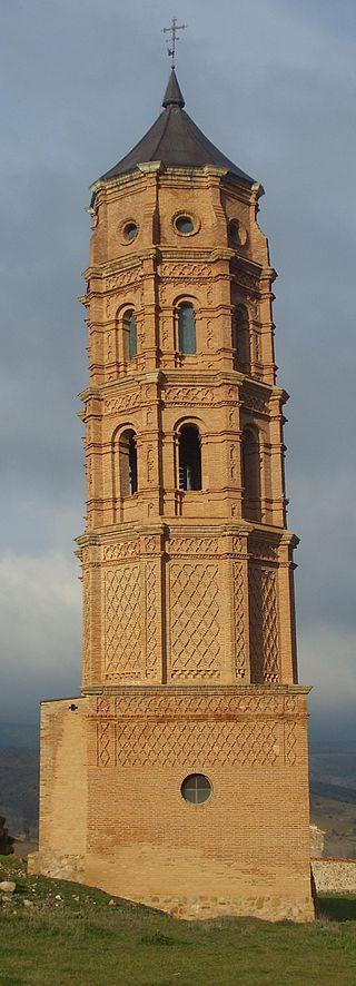 The tower of the old church is a Mudejar style building located in the Spanish town of Olalla, municipality of Calamocha, province of Teruel, Aragon. It has been designated as an Asset of Cultural Interest since December 22, 1982.a​ Built between 1584 and 1603, it has a square base and an octagonal top.