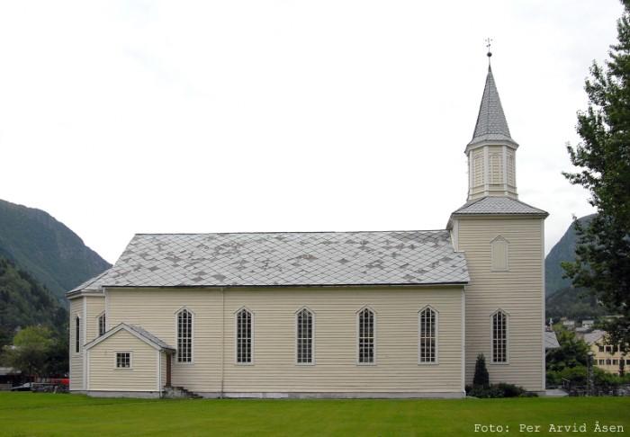 Odda Church is a wooden long church built in 1870. The church was designed by C. Erichsen. He also designed the church of Øystese, which was completed in 1868. The drawings of the Odda church are based on the Øystese church. The old church of Odda was a stone church from the Middle Ages.
