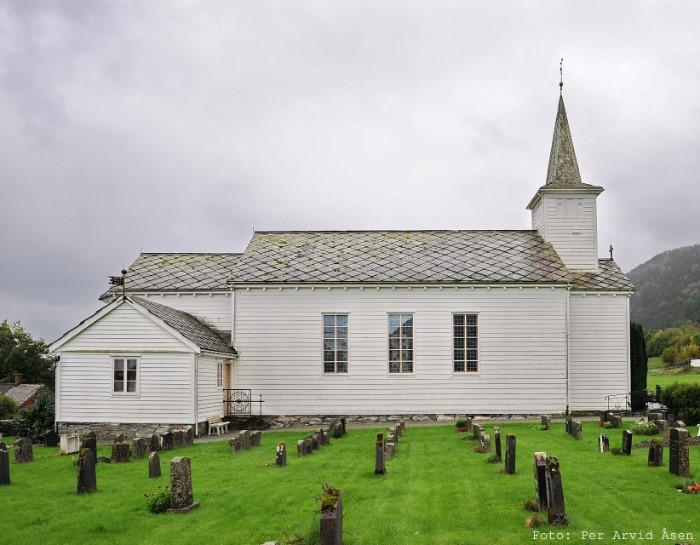 The Ølve church in Kvinnherad is built of wood and was completed in 1861. The church, inspired by the Linstow type, was built by the architects Kärnus and J.Kilarhaug.