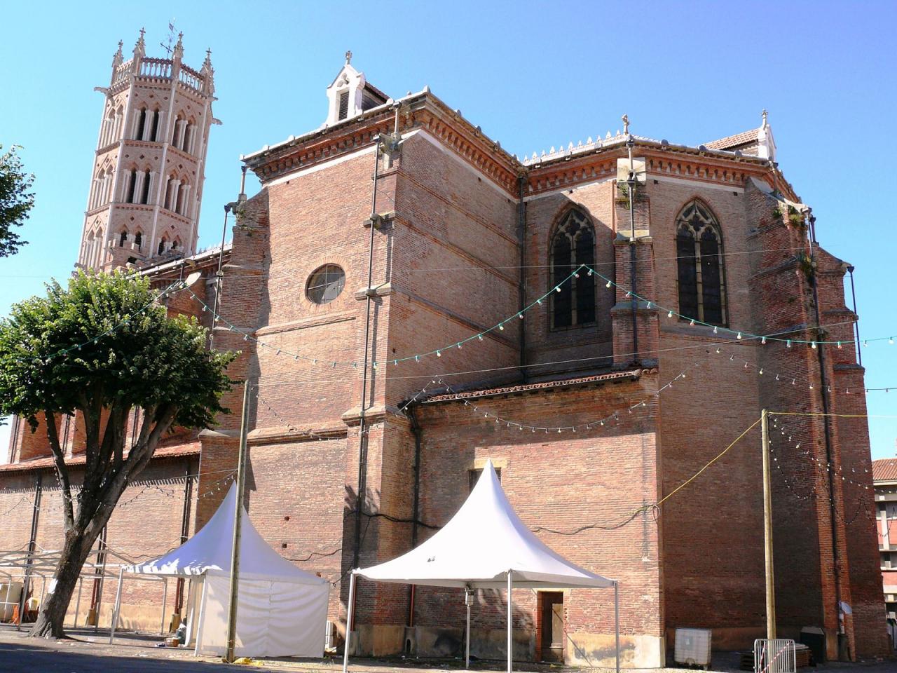 The Cathedral has only one nave, spread over four spans, with chapels flanking it, between the buttresses. An imposing bell tower, of octagonal plan, stands in brick, in a typically Toulouse Gothic style, inspired largely by the bell tower of the Jacobins of Toulouse.