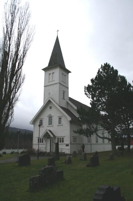 Randfjord Church is a long church built in 1916 according to the plans of engineer H. Horn. In 1989-90 the interior of the church was renovated. At that time, large parts of the interior and facilities were painted pink and blue.