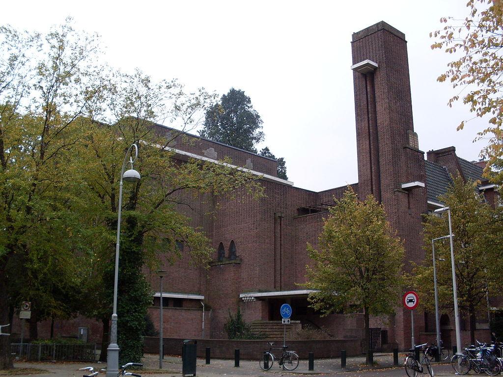 The church, rectory and study form a whole and were designed by Johan WF Hartkamp jr. , a pupil of Hendrik Petrus Berlage . The church complex was completed in 1914 as a continuation of the clandestine church 'De Ooievaar' on the Barndesteeg .
