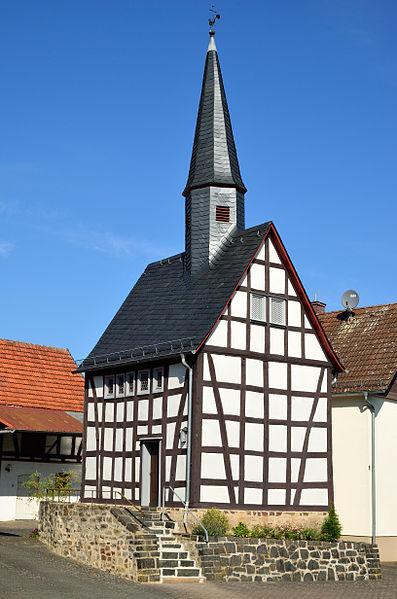 The half-timbered church in Frohnhausen was built between 1770 and 1789. It is one of the "Kaffeemühlenkirche" (coffee mill church) of the region because of its appearance.