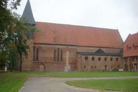 The monastery church is a single-nave flat-roofed hall church and with late Romanesque style elements a typical brick building. It is probably from the 13th century.