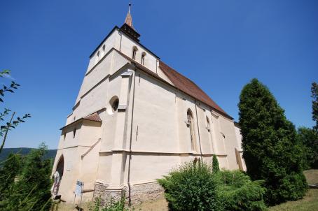 The three-aisles hall church originates from the 15th century, when the aisles of the former Romanesque basilica were heightened. The chancel and the nave were vaulted, and the walls of the side naves were replaced with octagonal pillars. A tower was built for the first time on the western side of the church and together with the nave and the chancel it was strengthened by adding defence levels between 1504 and 1507. From the fortification measures of the 15th and 16 century, the outer ring walls and three defensive towers have been preserved. The inner wall was demolished in the 19th century, but its path it is easy to track on the exposed foundations. On the north side a storage building equipped with loopholes survived the centuries. The church boasts several treasures in its interior: the neoclassical organ altar from 1821, a Gothic tabernacle, the pulpit and wooden galleries built in 1760.
