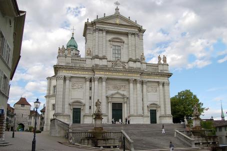 The Cathedral of St. Ursus is an early Classicist church built between 1762 and 1773 by Gaetano Matteo Pisoni and Paolo Antonio Pisoni on a site where two previous buildings had probably stood since the early Middle Ages. The interior is decorated with stuccoes by Francesco Pozzi. The old church, a Gothic building well attested by sources and iconography, was very dilapidated in the mid-18th century. It was demolished in 1761-1768.