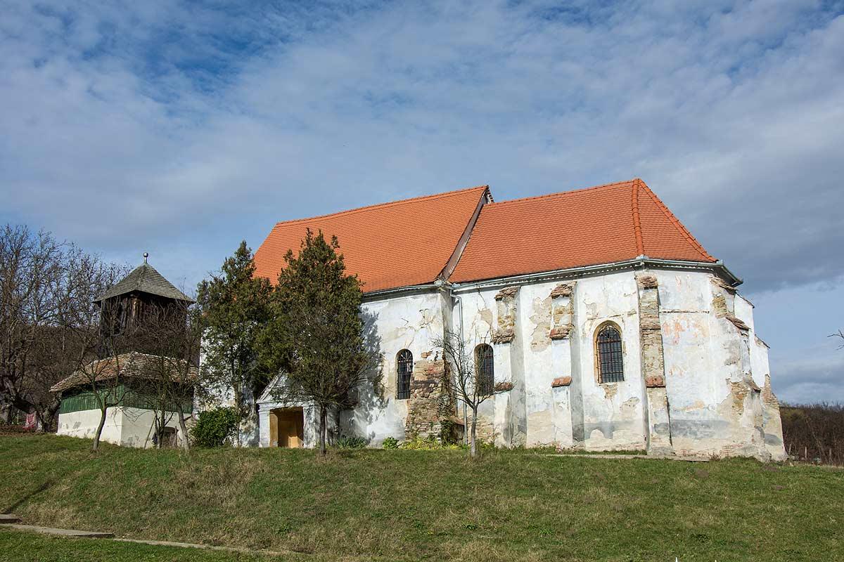 In the small village of Tătârlaua, first mentioned in documents in the year 1332, stands the towerless hall church dating back to the 15th century. The nearly square-shaped central nave isFreske des Heiligen Christopherus completed by a long-stretched choir with polygonal closure, canopied by a late Gothic reticulated vault. The central nave with its flat ceiling and the circumferential gallery are rather conservative and can be observed as quite a contrast. The bells are located in a separate wooden bell tower. No traces of the former defence system have remained.