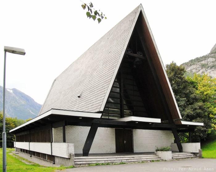 Odda Church is a wooden long church built in 1870. The church was designed by C. Erichsen. He also designed the church of Øystese, which was completed in 1868. The drawings of the Odda church are based on the Øystese church. The old church of Odda was a stone church from the Middle Ages.